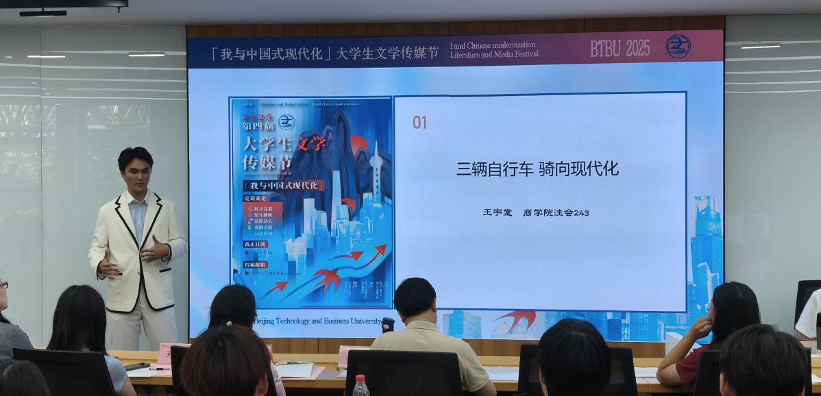 2025年6月18日,北京工商大學(xué)第四屆“大學(xué)生文學(xué)傳媒節(jié)”演講比賽決賽在良鄉(xiāng)校區(qū)師生服務(wù)中心203教室隆重舉行。此次活動(dòng)由語(yǔ)言與傳播學(xué)院中文教研室、中國(guó)故事敘事研究中心主辦,來(lái)自全校各個(gè)學(xué)院的10名選手在歷經(jīng)初賽、復(fù)賽選拔后齊聚一堂,以“我與中國(guó)式現(xiàn)代化”為主題,聲情并茂地講述了中國(guó)式現(xiàn)代化進(jìn)程中的精彩故事,生動(dòng)詮釋了新時(shí)代青年對(duì)中國(guó)式現(xiàn)代化的深刻理解和獨(dú)特感悟。