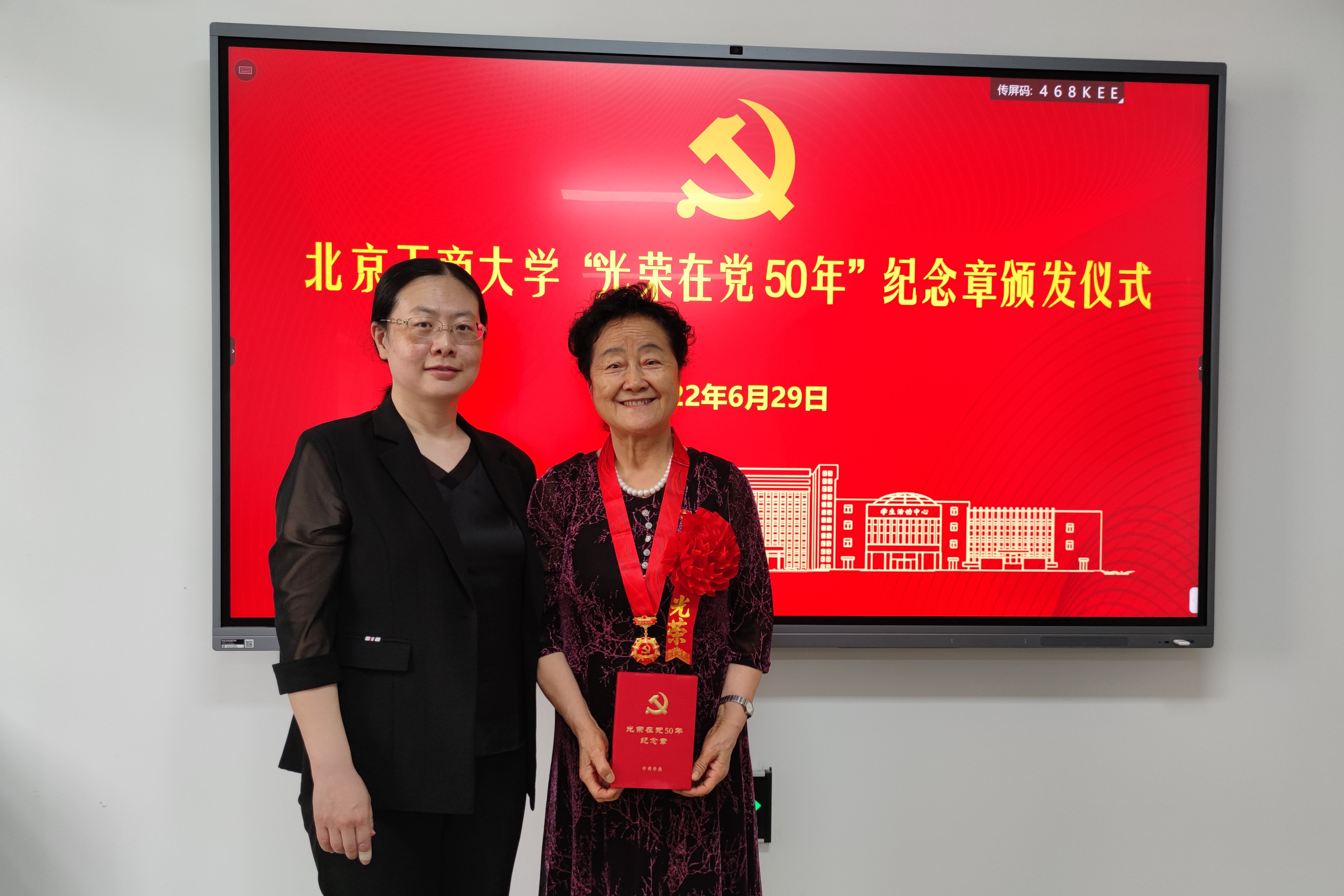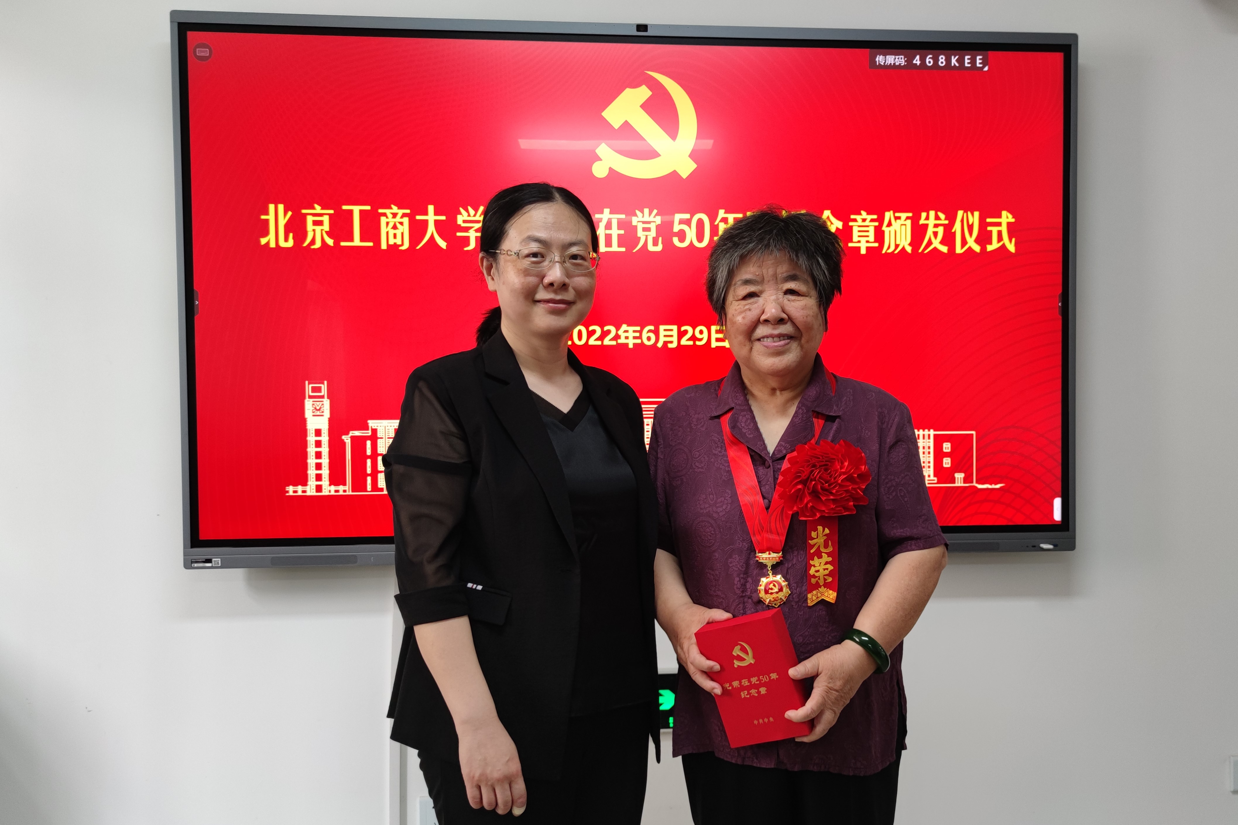 6月29日,學(xué)校“光榮在黨50年”紀(jì)念章頒發(fā)儀式在阜成路校區(qū)西區(qū)老干部活動(dòng)中心舉行。今年是中國(guó)共產(chǎn)黨成立101周年,學(xué)校有11名黨齡達(dá)到50周年的老黨員榮獲“光榮在黨50年”紀(jì)念章。“光榮在黨50年”的老黨員代表,離退休黨委書記楊巧明、離退休工作處處長(zhǎng)王紅英、副處長(zhǎng)褚財(cái)寬,離退休黨支部書記代表等參加了儀式。儀式由離退休工作處處長(zhǎng)王紅英主持。