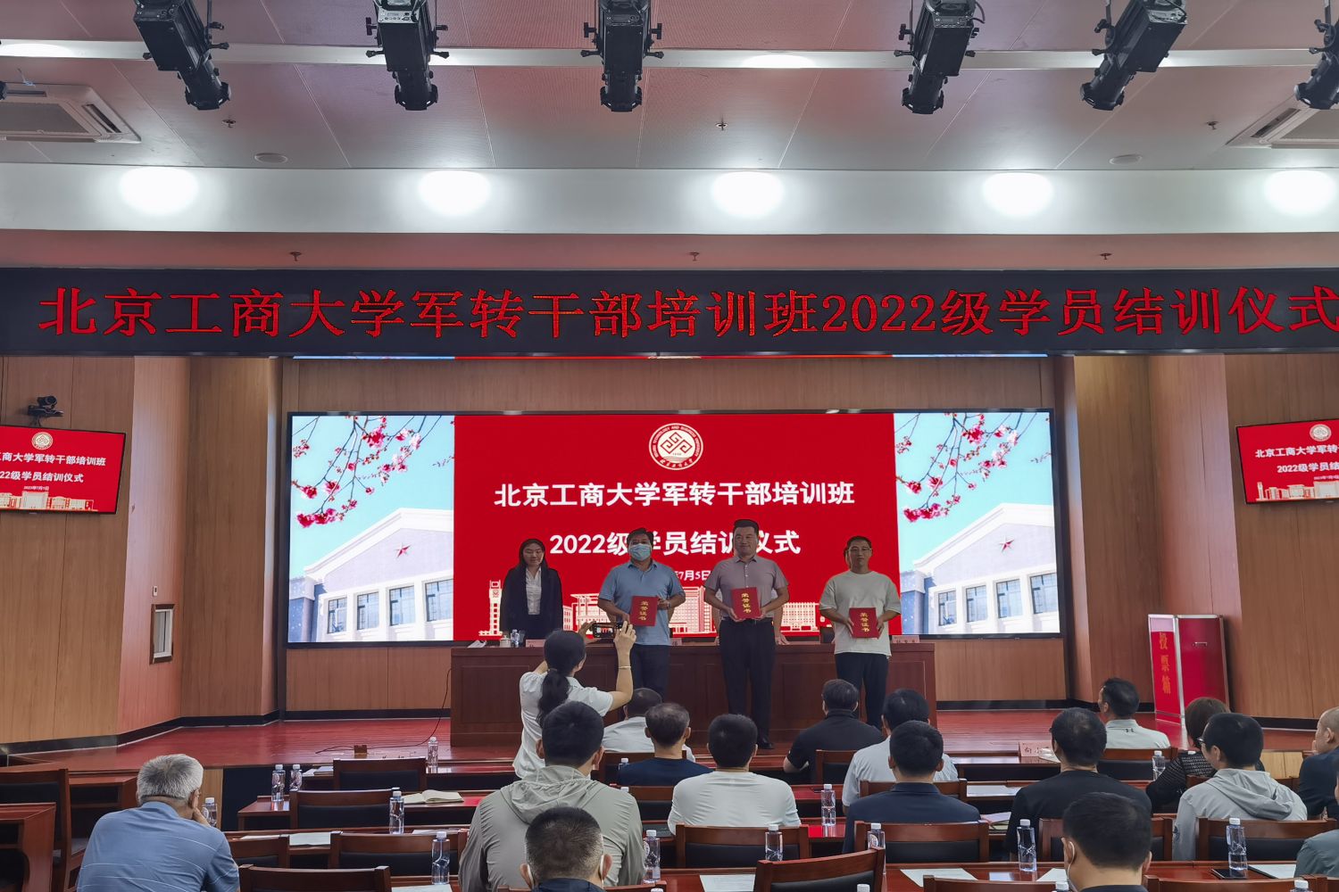 隨后,與會領導和嘉賓為12名22級軍轉干部學員發放結業證書和榮譽證書。