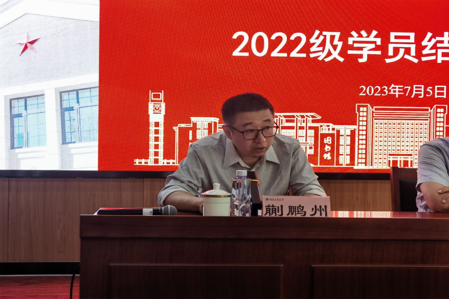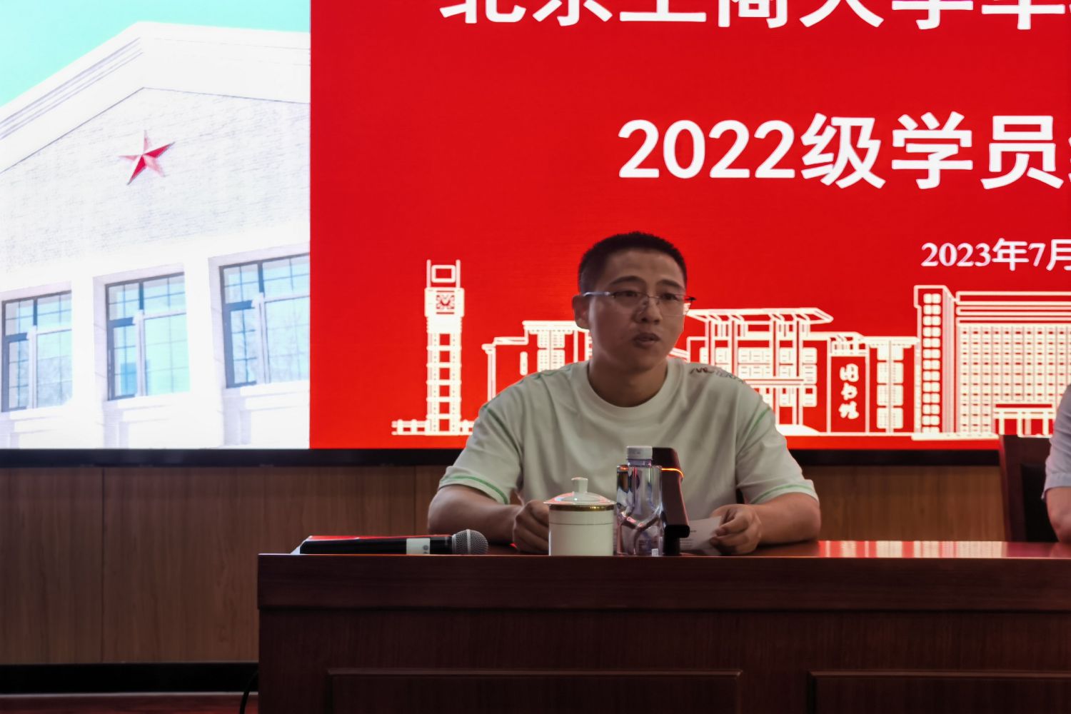 學員張存碩代表22級軍轉培訓班學員發言,他首先感謝北京市退役軍人事務部和北京工商大學提供這么好的學習機會,感謝每一位老師的悉心教導和精彩授課。他表示此次培訓不僅深入理解了新形勢下中國特色社會主義道路、馬克思主義原理在中國的應用等創新理論,也學習掌握了組織行為學、創新創業研究、企業戰略研究等與軍轉從事的管理崗位高度契合的專業知識。最后,他代表軍轉干部鄭重承諾,以此次學習培訓為契機,重新審視肩負的責任和使命,更好的服務于社會和人民,在未來的工作崗位上奉獻青春和力量。