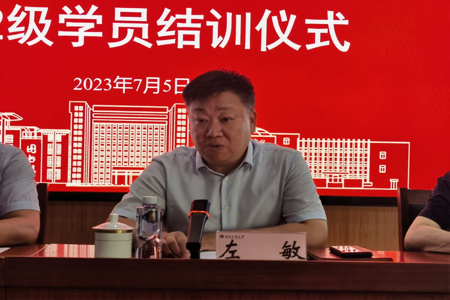 左敏在致辭中對2022級12名軍轉學員順利結訓表示熱烈祝賀,向悉心指導學員的老師表示衷心感謝。他指出,我校有優秀的文化傳統,積極推動面向區域和行業經濟建設與社會發展,服務于北京“四個中心”城市戰略定位與世界一流和諧宜居之都建設,“求真、立德、勤奮、創新”的校訓精神流淌在北工商人的血液里,也希望學員們能將這些精神帶到今后的工作和生活中去。他對學員們提出了兩點希望:一是希望學員們勤學好思,讓學習成為習慣。轉變思想觀念、改善知識結構,提高適應地方環境、勝任工作的能力和水平,由軍隊人才成長為地方人才。二是希望學員們實干篤行,永懷報國之志。將軍人忠誠祖國、報效祖國的品格,以及北工商人實干篤志的精神帶到實際工作中去,勇于開拓、勤于耕耘、甘于奉獻,將一年以來的所學所獲融入本職崗位,再立新功。