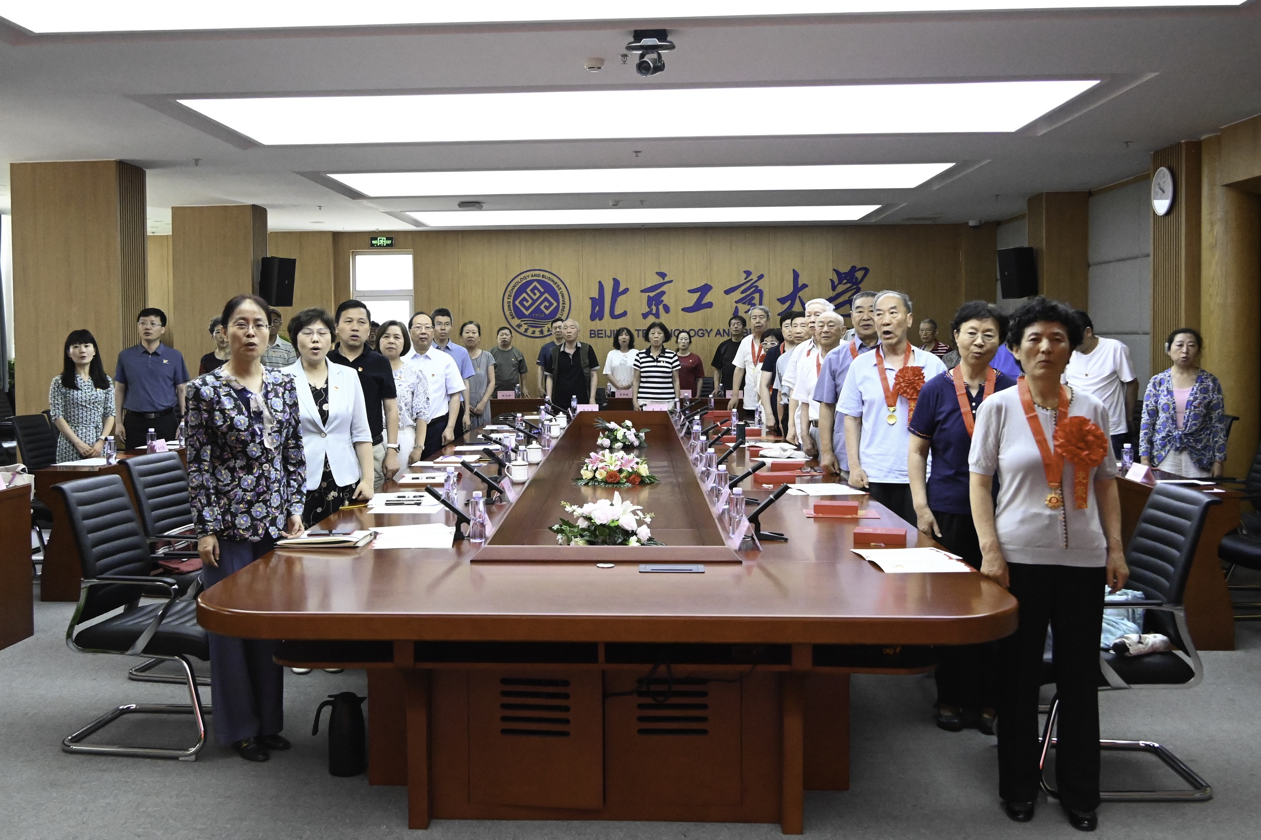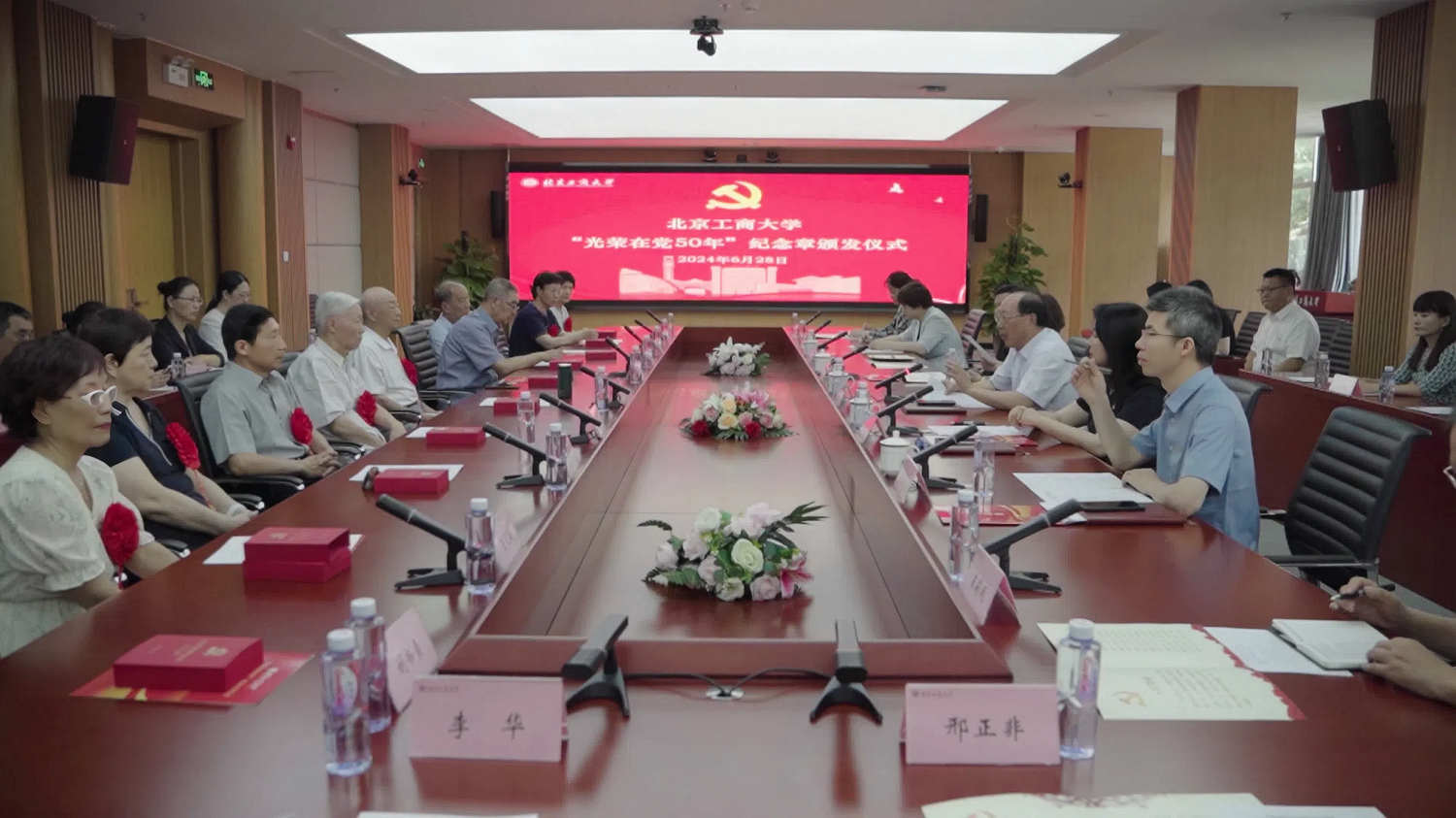 6月28日,學校在阜成路校區隆重舉行“光榮在黨50年”紀念章頒發儀式。學校黨委書記黃先開,黨委副書記宋曉欣、黨委常委、紀委書記楊紅,黨委常委、副校長毛新述、寇紅江出席,“光榮在黨50年”紀念章獲得者代表、學校離退休工作領導小組成員、離退休黨委支部黨員代表參加。頒發儀式由宋曉欣主持。