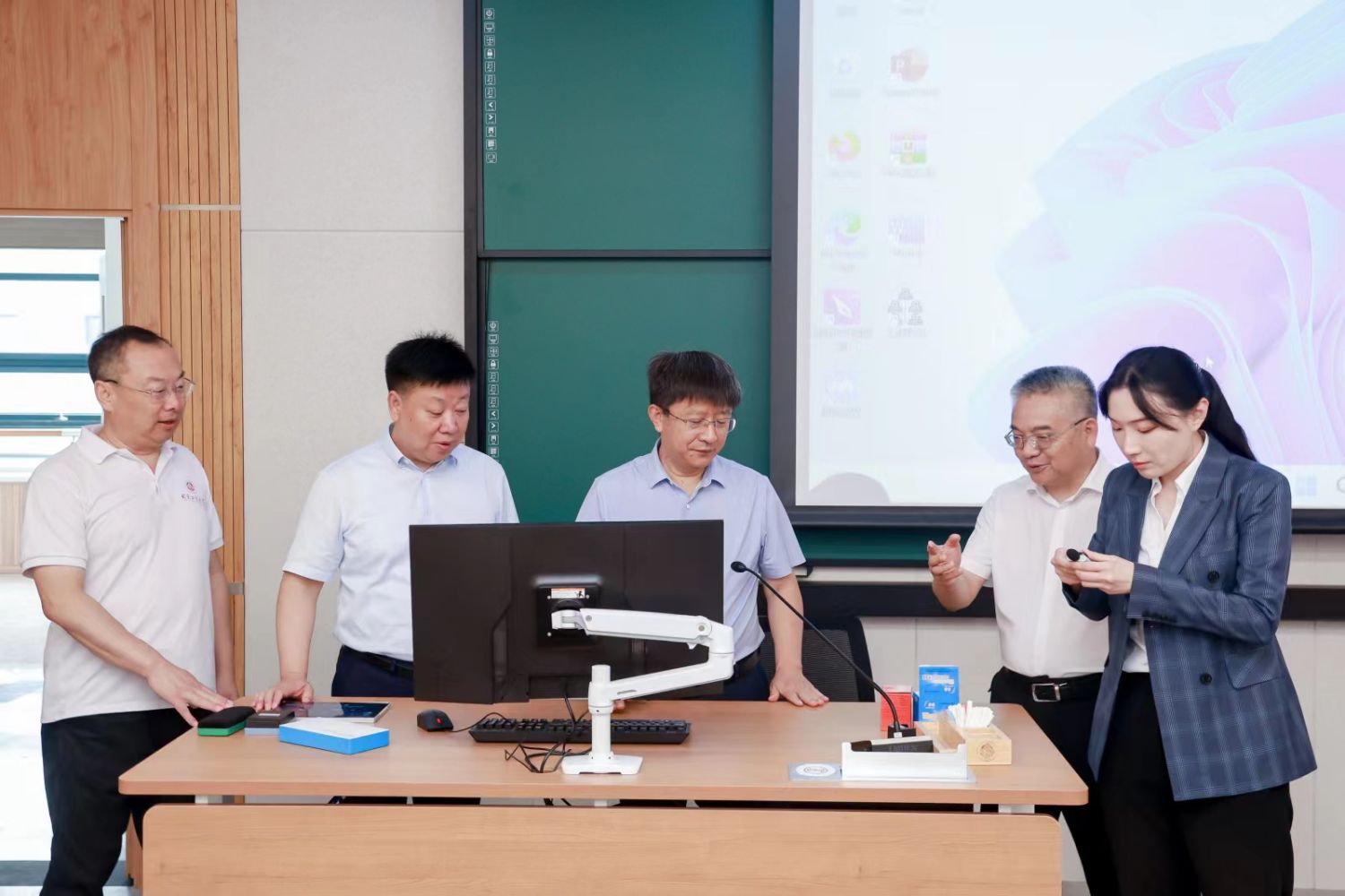 在檢查過程中,郭建華還強調(diào)了數(shù)字化轉(zhuǎn)型在現(xiàn)代教育中的關(guān)鍵作用。他鼓勵學(xué)校積極探索新的課堂教學(xué)模式,充分利用學(xué)校的智慧教學(xué)環(huán)境,推動數(shù)字資源在教育中的廣泛應(yīng)用,以提高學(xué)校的教育質(zhì)量。這學(xué)期文三樓智慧教室成功建設(shè)并投入使用的背后,是學(xué)校教務(wù)處、校園建設(shè)處等多個職能部門的積極支持,共同協(xié)作的結(jié)果。在過去短短的一個暑期中,克服了高溫暴雨等多重困難,確保了文三樓的智慧教室改造項目如期完成。