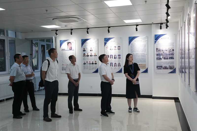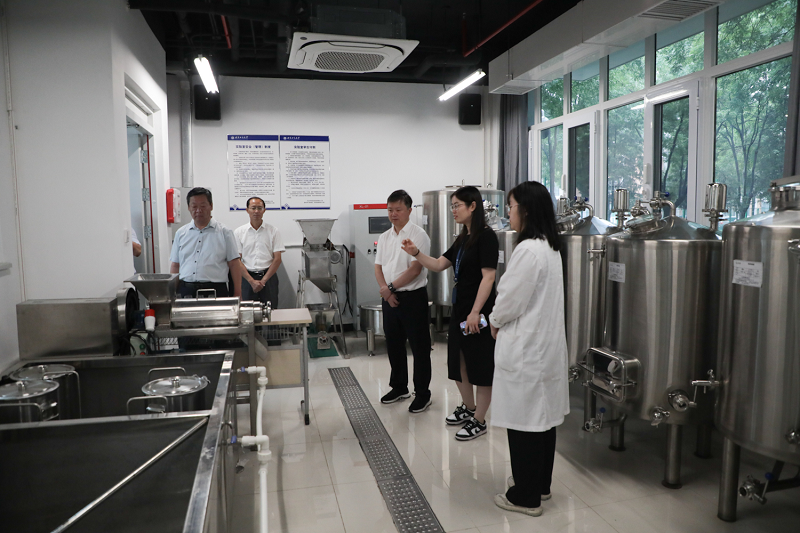 李豫凱一行首先參觀了中國輕工業釀酒分子工程重點實驗室,現場參觀了相關實驗實訓室。在“風味與健康”雙導向下,感受到北京工商大學為國酒研究所付出的努力以及取得的成果。在數字未來中心,和田師專領導們現場體驗了實時網絡聽課和虛擬校園漫游,感受了“全景沉浸”智云基地、“五位一體”教學空間,切身體會了教育數字化轉型助力學校發展的重要作用。在良鄉主校區,各位領導參觀了智慧教室、文樓長廊、圖書館等。