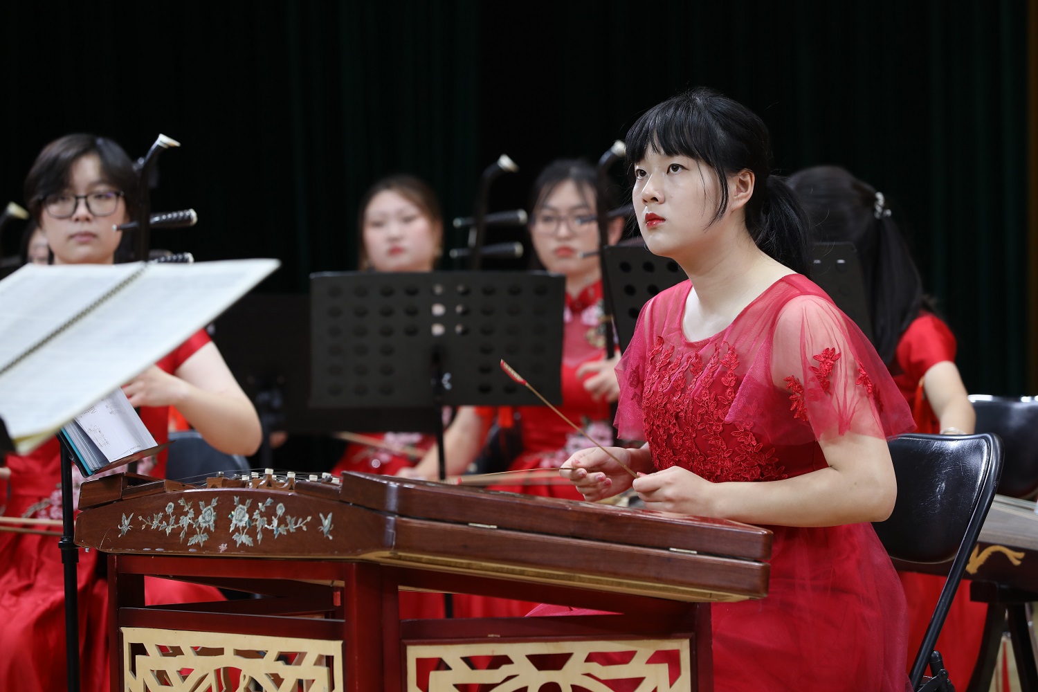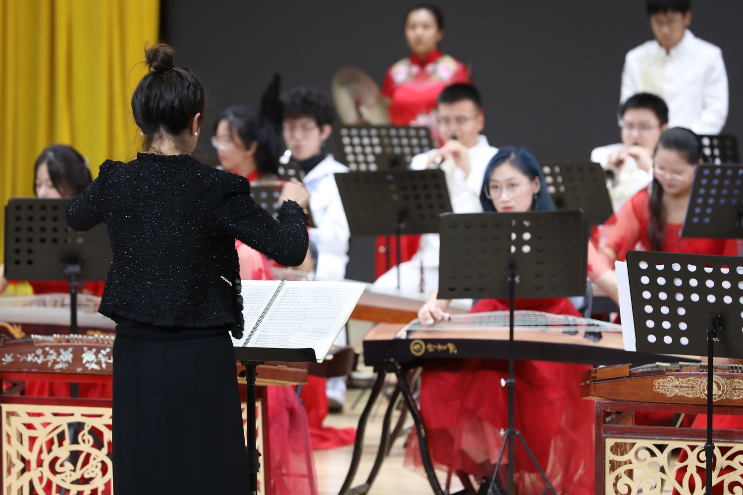 2022年11月,我校學生民樂團在體育與藝術教學部的支持下,克服疫情困難,充分利用課余時間刻苦訓練,錄制參賽作品《慶典序曲》。作品旋律性極強,作品采用典型的三部曲式,樂句之間緊湊靈巧、順暢灑脫,將高昂雄渾、熱鬧喧天的節日主題展現的淋漓盡致。快板部分洋溢著活潑喜慶的氣氛,慢板則是更加柔順抒情、清晰透亮,全曲喜氣洋洋、振奮人心,將自強不息、奮發進取的民族精神盡情揮灑。