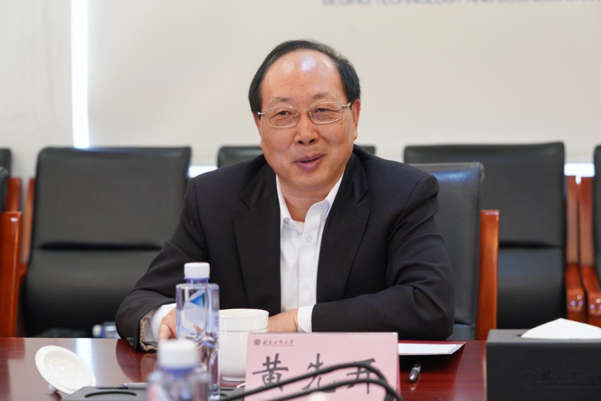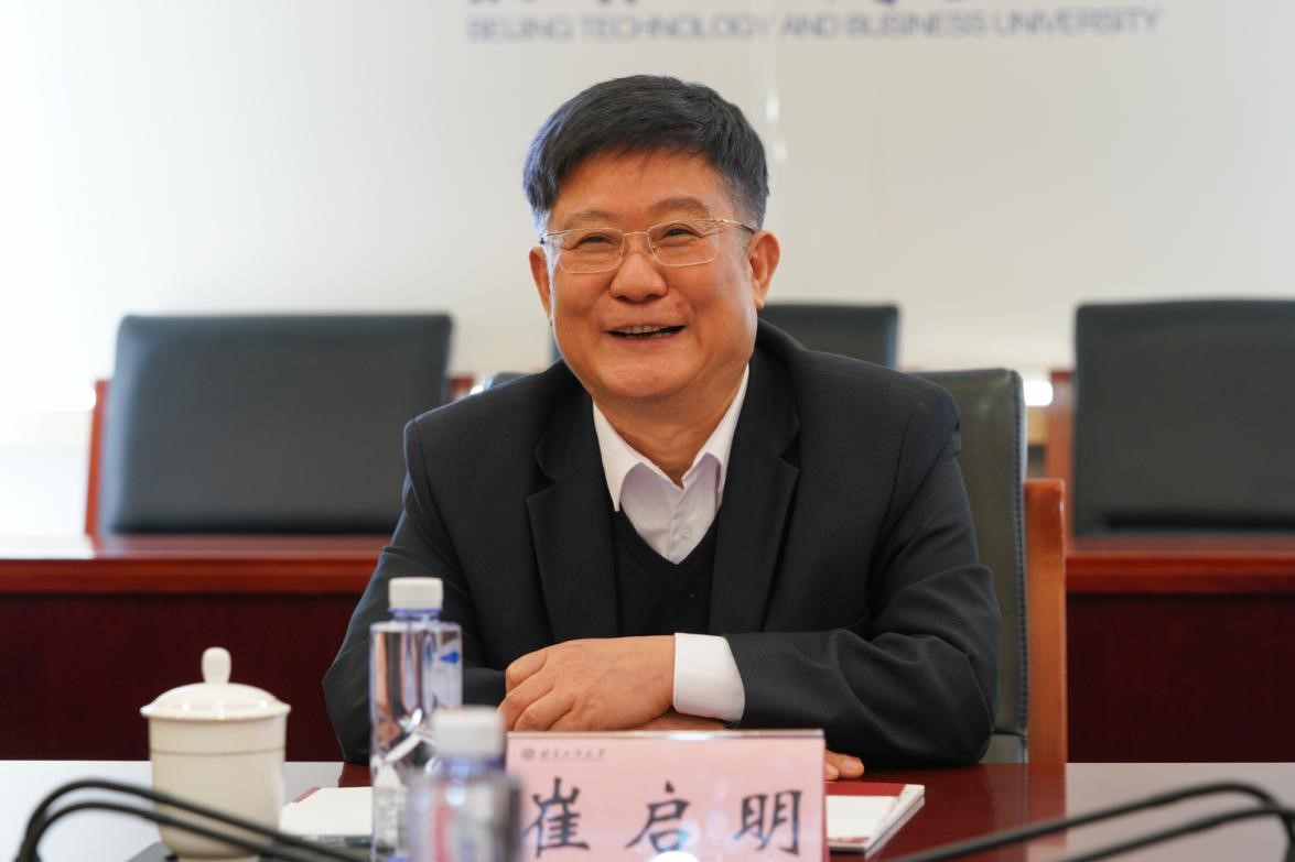 黃先開代表學校對崔啟明一行來訪表示熱烈歡迎,并介紹了學校的基本情況、辦學定位和發展方向。他談到,近年來,學校堅持以高水平研究型大學建設為目標,以首都經濟社會發展需求為導向,大力調整學科專業布局,加快推進學校轉型發展,充分發揮商科、輕工和食品學科優勢,積極服務首都城市戰略定位,為首都“兩區”“三平臺”、數字經濟發展、國際消費中心城市建設等提供了有力的人才支撐和智力支持。希望雙方進一步交流經驗、增進了解、深化合作、共謀發展。