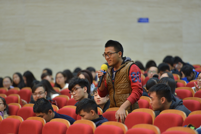 精彩分享之后,現(xiàn)場同學們還就自己關(guān)心的問題向劉教授提問,劉教授不僅肯定了同學們的提問,還旁征博引,風趣幽默,全面回答了同學們的提問,多次獲得了大家的熱烈掌聲。
