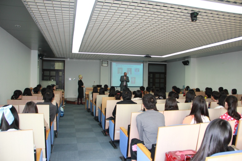 會談前,卡洛琳女士一行在國際交流與合作處副處長賀冬萌的陪同下前往良鄉校區,為我校學生進行了牛津大學赫特福德學院商務英語項目的宣講會,并回答了學生所關心的問題。