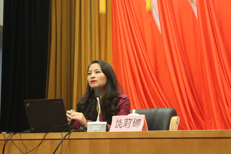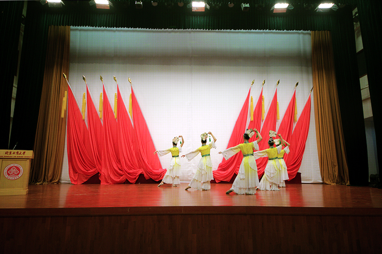 在講解的過程中,饒老師指導的學生舞蹈團配合講座內容不時給大家奉上精彩的表演。例如在講解舞蹈演員外形審美標準時,表演傣族舞的女同學憑借其美麗的身形和精湛的技藝將傣族舞中靈動的手臂和輕盈的步伐表現的淋漓盡致。在講解舞蹈分類時,同學們身著古典的服裝,揮舞著扇子,帶領同學們感受古典舞蹈的美麗。