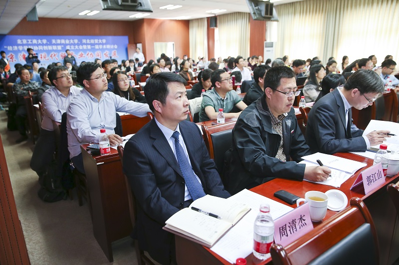 隨后,與會專家圍繞國家經濟發展和京津冀一體化建設等問題進行了主題發言。馬曉河研究員、米建國研究員和孫久文教授,分別就“當前經濟形勢與供給側改革”、“京津冀一體化的機制建設”和“京津冀服務業一體化研究”做了主題報告。天津商業大學李海偉教授、河北經貿大學郭江山教授、我校經濟學院周清杰教授、李麗副教授和熊文博士也就京津冀協同發展問題進行了會議交流。經濟學院黨委書記張正平進行了會議總結。大會結束后,三校“經濟學學科協同創新聯盟”理事會舉行第一次會議,討論了具體的合作內容、合作方式和工作重點等內容。