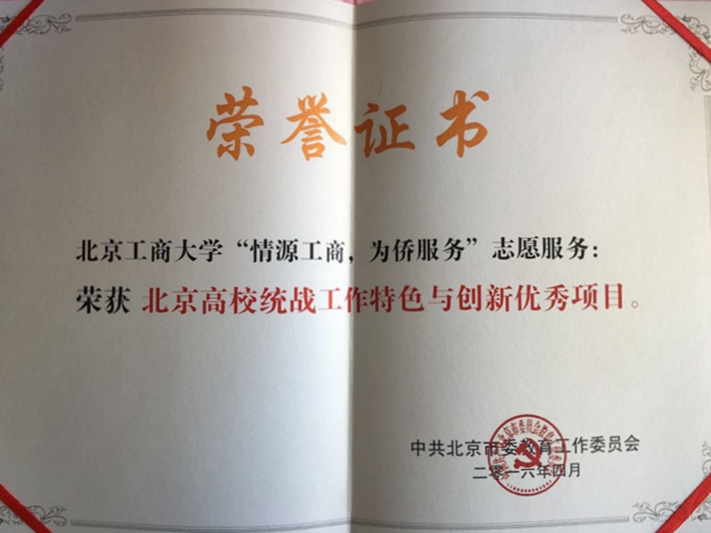 近日,北京高校統戰工作會議召開,我校“情源工商,為僑服務”志愿服務項目榮獲“北京高校統戰工作特色與創新優秀項目”。