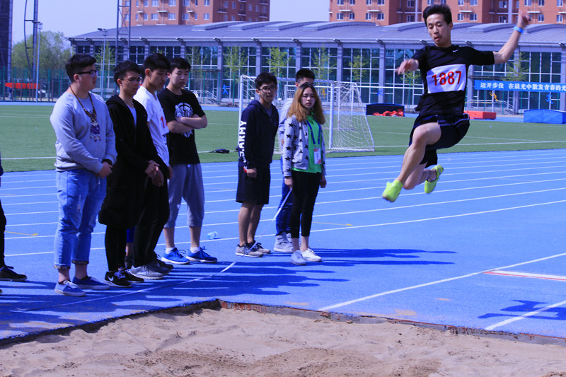 在操場另一端的田賽現場上運動員們的表現同樣精彩。廣告15級的徐博雅奮力一躍,在空中劃出一個完美的流線,跳入沙坑,以5.92米的成績取得了男子跳遠的第一名。他賽后表示,雖然得了第一,但是成績不是非常滿意,如果有機會參加校運動會,一定要發揮出更好的水平。