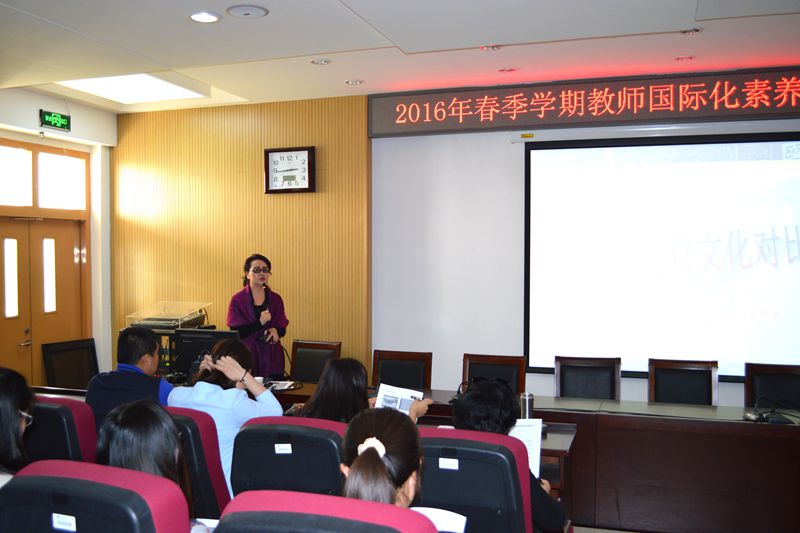 此次培訓(xùn)的首講人是外國語學(xué)院英語系主任張艷華副教授。她從中西文化禮儀對比的角度進(jìn)行講解,并同老師們分享了自己對“國際化”概念的體會。其生動活潑、深入淺出的闡述給教師們以深刻啟發(fā)。