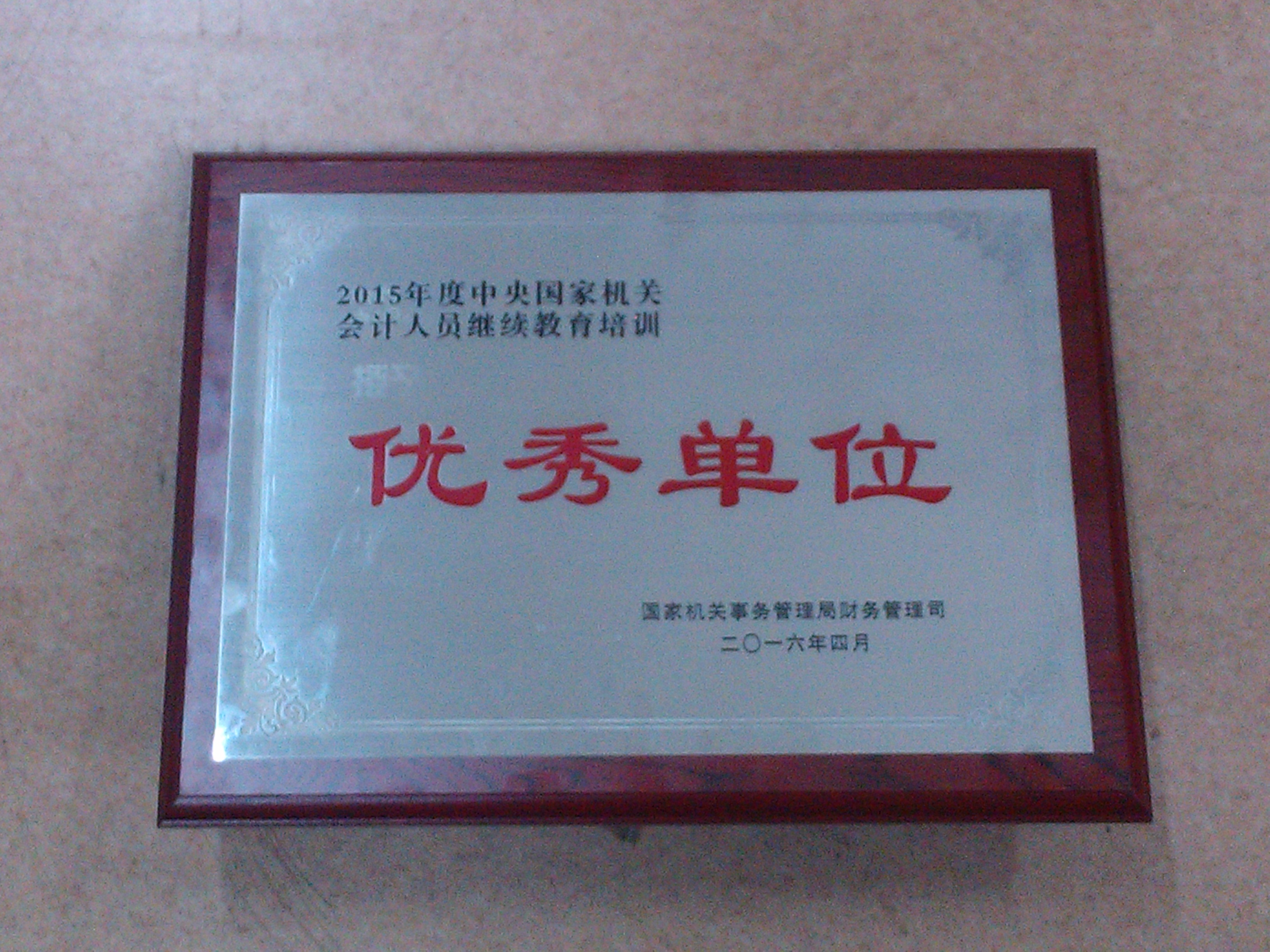 我校教育培訓中心榮獲2015年度中央國家機關會計人員繼續教育培訓優秀單位