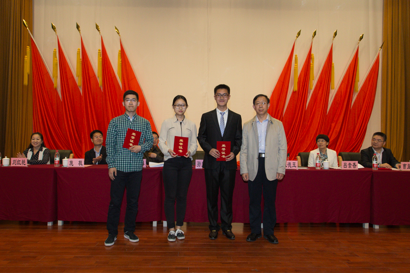 獲得校內(nèi)數(shù)學(xué)競(jìng)賽一等獎(jiǎng)的計(jì)信學(xué)院電子142班的任欣欣同學(xué)、獲得英語四級(jí)考試一等獎(jiǎng)的新聞152的吳極同學(xué)分別發(fā)言,表達(dá)了對(duì)學(xué)校、老師和同學(xué)們的感謝,并與大家分享了學(xué)習(xí)經(jīng)驗(yàn)和心得體會(huì)。任欣欣同學(xué)談到,對(duì)于非數(shù)學(xué)專業(yè)的學(xué)生要常常接觸幾門與數(shù)學(xué)密切相關(guān)的課程,參加數(shù)學(xué)競(jìng)賽能夠有效地督促自己加強(qiáng)練習(xí),拓展視野;參加比賽可以逐漸提高自己分析、判斷、解決問題能力。她倡議同學(xué)們要積極參加數(shù)學(xué)競(jìng)賽,以練促學(xué),以賽促學(xué)。