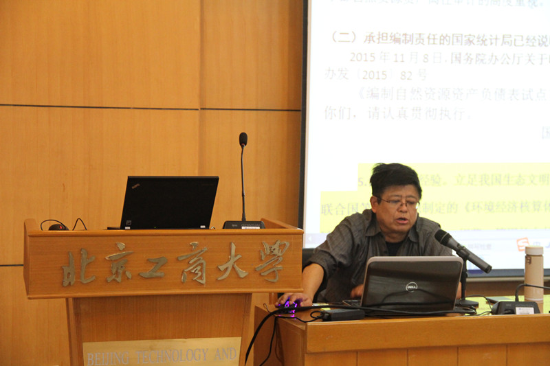 耿建新教授分別就自然資源資產(chǎn)平衡表的由來和自然資源資產(chǎn)責(zé)任審計(jì)的由來做了主題講座。他介紹了黨和國(guó)家對(duì)自然資源資產(chǎn)負(fù)債表及其建立在其基礎(chǔ)上的領(lǐng)導(dǎo)干部離任審計(jì)的多次指示,并著重介紹了其對(duì)這方面相關(guān)問題的研究過程、研究體會(huì)和研究成果。他還結(jié)合澳大利亞的自然資源表格體系,提出了編制我國(guó)的土地平衡表、水資源表格的編制思路和具體方法。他認(rèn)為,我國(guó)應(yīng)該與國(guó)際上保持一致,遵循“國(guó)際趨同”,在具體編制過程中,不完全照搬國(guó)外的表格體系,結(jié)合自己的特色來進(jìn)行表格的編制。同時(shí),耿建新教授寄語教師和學(xué)生,希望大家關(guān)注此項(xiàng)工作,有志者能嘗試進(jìn)入這一專題領(lǐng)域,挖掘科研機(jī)會(huì),為國(guó)家貢獻(xiàn)有用的科研成果。
