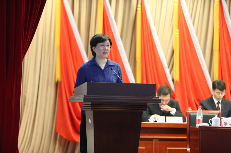 副校長張耘作學校財務工作報告。她總結了學校2015年預算執行情況、執行效果,介紹了學校2016年預算安排和2016年財務重點工作。