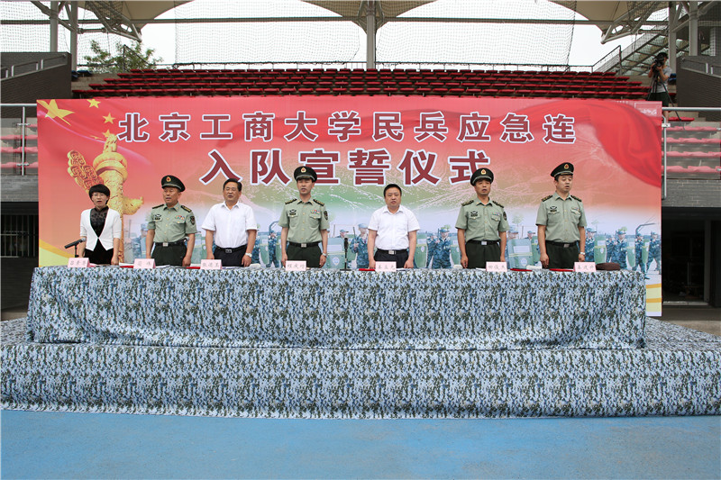 5月31日下午,北京工商大學民兵應急連入隊宣誓儀式在良鄉校區舉行。北京衛戍區副參謀長程慶增、西城區政府副區長姜立光、北京衛戍區動員處副處長田俊杰、西城區武裝部部長藺偉、我校黨委副書記張德玉出席活動。儀式由學生處處長兼武裝部部長呂素香主持。