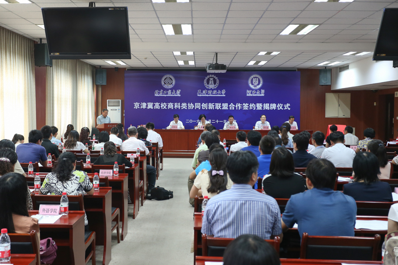 6月21日,我校與天津財經(jīng)大學(xué)、河北大學(xué)三所高校合作成立“京津冀高校商科類協(xié)同創(chuàng)新聯(lián)盟”,在商科教育的學(xué)科建設(shè)、人才培養(yǎng)、科學(xué)研究與服務(wù)京津冀發(fā)展等方面建立合作機制。北京市教工委副書記、河北省教育廳黨組副書記、副廳長韓俊蘭,天津市教育委員會副主任韓金玉,我校黨委書記譚向勇、天津財經(jīng)大學(xué)校長李維安、河北大學(xué)黨委副書記王余丁出席活動。我校部分職能部門領(lǐng)導(dǎo)、相關(guān)學(xué)院領(lǐng)導(dǎo)及教師參加成立大會。活動由副校長謝志華主持。