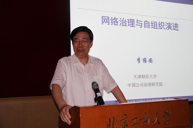 6月21日下午,應(yīng)我校國有資產(chǎn)管理協(xié)同創(chuàng)新中心、商學(xué)院和經(jīng)濟學(xué)院的邀請,天津財經(jīng)大學(xué)校長、長江學(xué)者特聘教授李維安為我校學(xué)生作了題為“網(wǎng)絡(luò)治理與自組織演進”的專題學(xué)術(shù)報告。報告由副校長謝志華主持。商學(xué)院、經(jīng)濟學(xué)院教師和研究生120余人到會聆聽了報告。