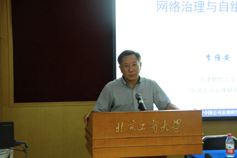 謝志華副校長對報告進行了點評。他認(rèn)為李維安教授的報告深入淺出、引領(lǐng)治理前沿,使人深受啟發(fā)。他進一步提出,網(wǎng)絡(luò)時代帶來的是人類社會組織狀態(tài)下體制模式的重大變化,李維安教授的講座緊緊抓住這個基點,深刻闡述了網(wǎng)絡(luò)條件下社會各個方面的變化。由于網(wǎng)絡(luò)的出現(xiàn),使公司治理在兩個方面發(fā)生了重大變化,一是公司治理的模式發(fā)生了變化,二是被治理的對象也發(fā)生了變化。這些變化使我們對“誰是公司的控制人”有了全新的認(rèn)識和更深刻的理解。