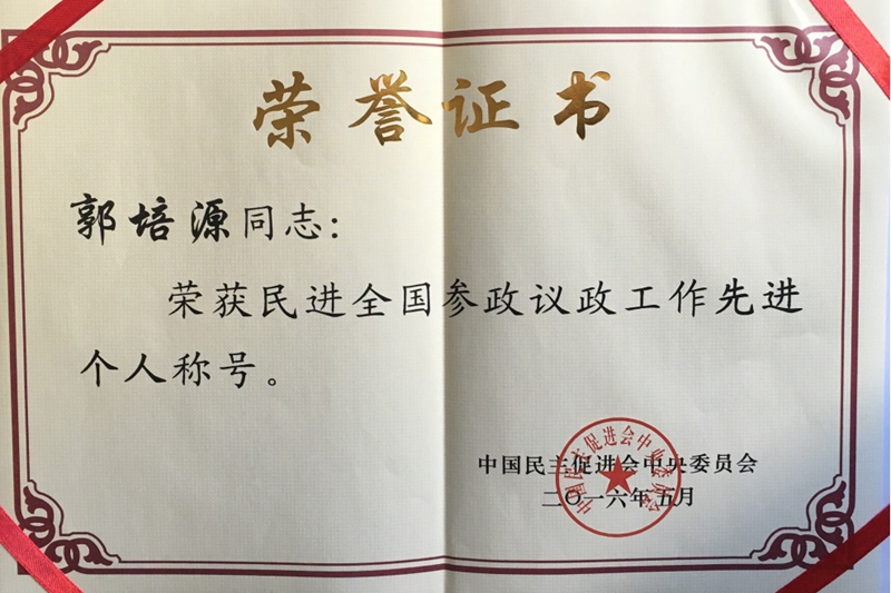 郭培源教授現(xiàn)任民進(jìn)中央教育委員會副主任、民進(jìn)北京市委員及監(jiān)督委員會委員、民進(jìn)北京市教育委員會副主任,民進(jìn)北京工商大學(xué)支部副主任。多年來,在做好學(xué)校人才培養(yǎng)、科學(xué)研究本職工作的基礎(chǔ)上,郭培源積極服務(wù)社會,始終如一地關(guān)注國家、北京市、學(xué)校的教育問題,認(rèn)真履行職責(zé),積極參政議政,為民進(jìn)中央、北京市、學(xué)校的參政議政做出了突出貢獻(xiàn)。