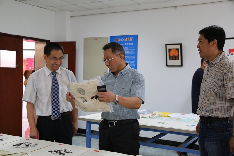 6月15日—22日,校領導譚向勇、孫寶國、張德玉、謝志華、李朝鮮、張耘、鄭文紅、方德英、邱曉平等蒞臨學院觀展,并參觀了學院陶瓷工藝與材料創新工作室、絲網印刷工作室等。校領導觀看了2016屆畢業生制作的視覺特效短片作品,體驗了絲網印刷工藝和木板年畫印刷等工藝,對師生平面作品、油畫、素描、剪紙、書法、國畫以及手繪等作品給予高度評價,對學院共享型創新工作室人才培養模式給予肯定,并希望學院進一步圍繞專業特色完善實踐教學體系,探索符合國家和首都經濟社會發展需求的發展路徑。