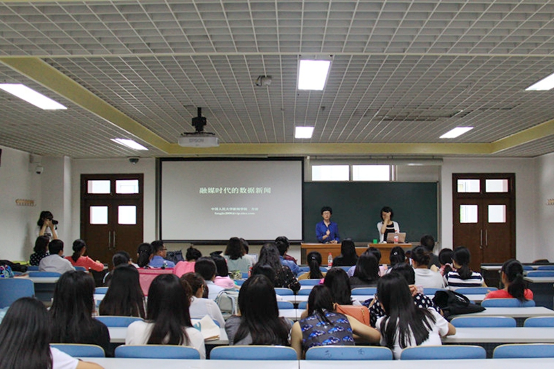 新聞系邀請了中國人民大學碩士生導師方潔舉辦了《融媒時代的數據新聞》講座與沙龍,方潔老師結合自己對融媒時代的數據新聞的研究,簡要凝練地介紹了融媒時代中媒體在信息生產和傳播等方面發生的轉變、什么是融媒時代的數據新聞,以及如何學做數據新聞等內容,并配以生動的案例加以說明。她還回答了新聞系師生們提出的若干問題,內容涉及媒體傳播技術和內容生產的平衡,以及在校大學生如何在融媒時代中發展培養相關能力。