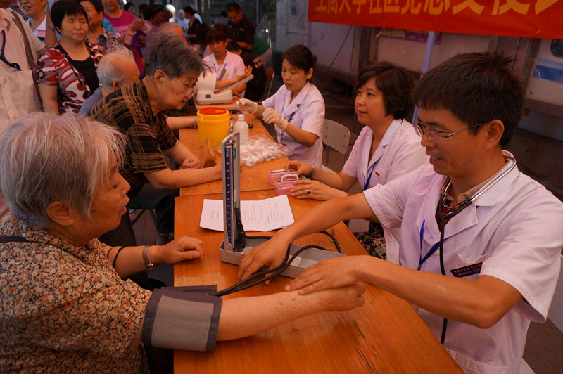海軍總醫院是第四次參加我校的便民服務活動的醫療單位,為保證醫療服務質量,他們特意派出了心臟外科、心血管內科、消化內科、呼吸內科、骨科等7個科室的專家團隊,到現場為居民進行義務問診和咨詢,深受廣大居民尤其是離退休老同志的歡迎。