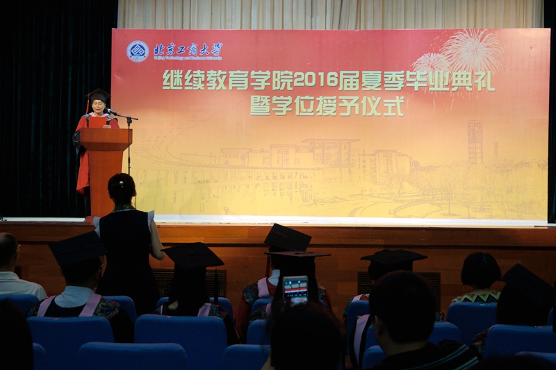 顧紅院長(zhǎng)宣讀《北京工商大學(xué)關(guān)于授予2016屆成人教育學(xué)生準(zhǔn)予畢業(yè)及學(xué)位授予的決定》,姚洪越副院長(zhǎng)宣讀了《北京工商大學(xué)繼續(xù)教育學(xué)院關(guān)于表彰2016屆優(yōu)秀畢業(yè)生的決定》和《北京工商大學(xué)繼續(xù)教育學(xué)院關(guān)于表彰“榮譽(yù)教師”的決定》。方德英副校長(zhǎng)為榮獲繼續(xù)教育學(xué)院“榮譽(yù)教師”的老師頒發(fā)證書(shū),學(xué)院領(lǐng)導(dǎo)為榮獲學(xué)繼續(xù)教育學(xué)院“優(yōu)秀畢業(yè)生”的本科學(xué)生和專(zhuān)科學(xué)生頒發(fā)證書(shū)。
