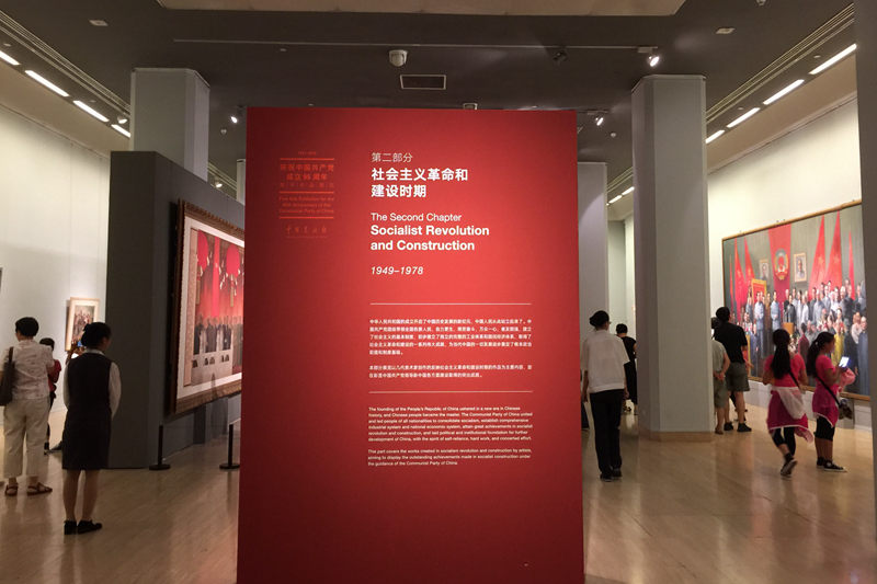 隨后,老師們一同來到中國美術館,共同觀看了由文化部主辦、中國美術館承辦的“慶祝中國共產黨成立95周年美術作品展覽”。展覽匯集我國幾代美術家在不同歷史時期創作的優秀作品300余件,以中國美術館館藏作品為主,包括部分其他美術機構的藏品和新創作品,涵蓋了中國畫、油畫、版畫、雕塑、年畫、連環畫、宣傳畫、漆畫等多個品種。展覽圍繞愛黨愛國愛社會主義的主題,分為新民主主義革命時期(1921-1949)、社會主義革命和建設時期(1949-1978)、改革開放和社會主義現代化建設新時期(1978至今)三個篇章,以恢宏壯觀的氣勢和異彩紛呈的畫卷,回顧和展現了95年來中國共產黨團結和帶領全國各族人民進行革命、建設、改革的光輝歷史和豐功偉績。