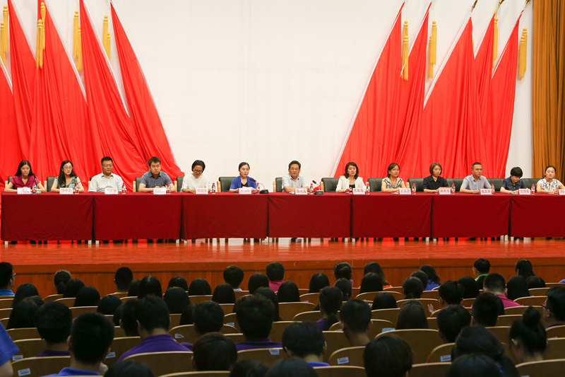 7月15日上午,我校舉行2016年暑期社會實踐出征儀式,校黨委副書記張德玉出席并講話。黨委宣傳部部長張春萍、團委書記王海偉、各學院黨委副書記、各實踐分團帶隊老師以及“十鄉百村千人行”社會實踐團全體成員參加了出征儀式。出征儀式由校團委副書記孫惟佳主持。