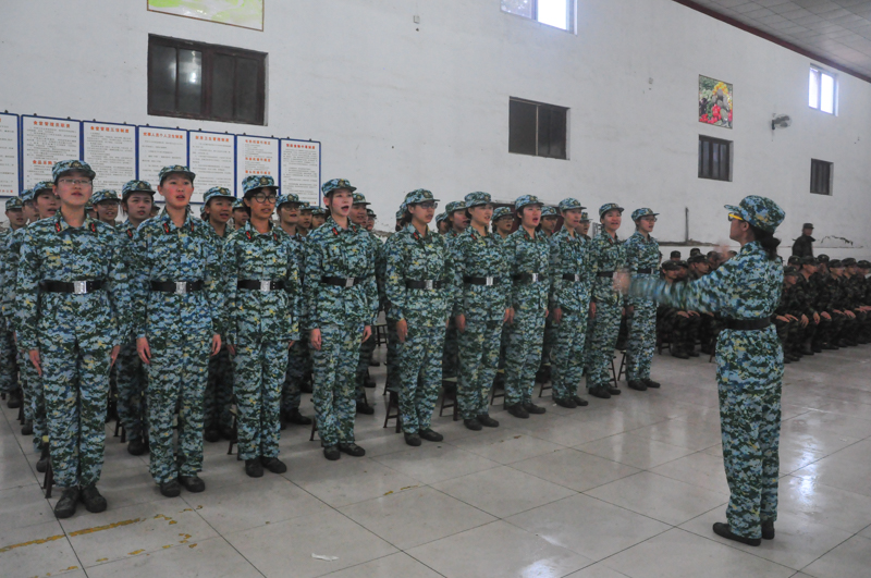 19號和20號連續兩天暴雨,教官們緊急啟動預備計劃,根據天氣情況安排了條令學習、內務整理、學軍歌等室內活動和小范圍的室內訓練,并于20號下午舉行會操比賽和歌詠比賽。