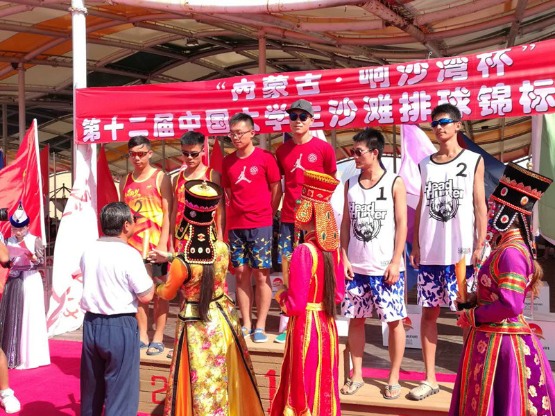 “內蒙古·響沙灣杯”第十二屆中國大學生沙灘排球錦標賽在響沙灣沙漠景區開賽。共有來自全國55所高校的120支沙灘排球代表隊參賽,為歷屆沙排比賽規模最大、參賽隊伍最多的一次。比賽分為專業組、高水平組、體育院系組和普通組共4個組別進行。我校女排獲第五名,男排獲普通組第三名。這是我校沙灘排球隊在全國體育團體比賽中獲得的最好成績。