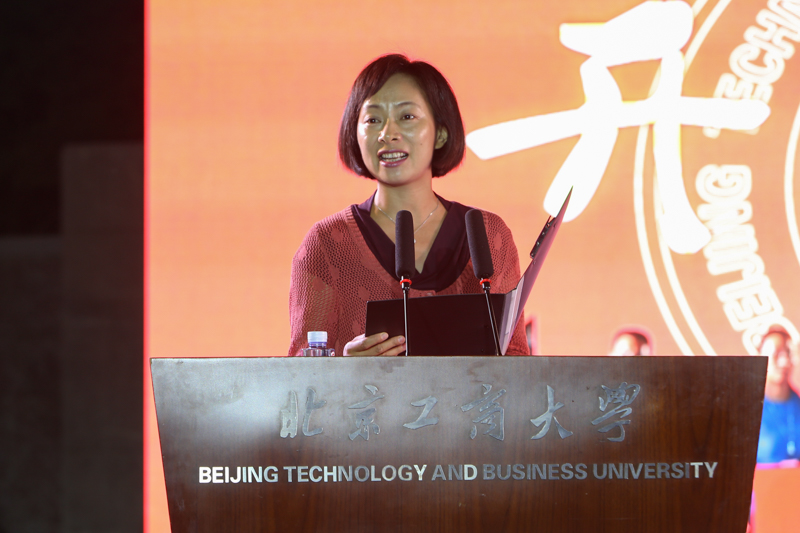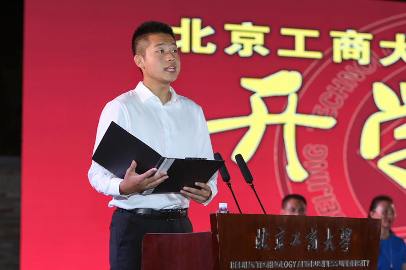 2016級新生代表、在校生代表分別發(fā)言,并預(yù)祝全校教職工教師節(jié)快樂。2016級新生代表經(jīng)濟(jì)學(xué)院的侯景川在發(fā)言中分享了他的入學(xué)感受,感嘆校園如畫卷般美麗,并認(rèn)為在最美的年華里相遇在北工商是最好的安排。他談到假期中通過校園網(wǎng)和學(xué)校官方微信看到了學(xué)校取得的各項成績,了解了學(xué)識淵博的老師、著有成就的校友和品學(xué)兼優(yōu)學(xué)長們的優(yōu)秀事跡,表示將以他們?yōu)榘駱樱_立清晰可行的學(xué)習(xí)目標(biāo),勤勉自律,在不斷篤學(xué)中實(shí)現(xiàn)自我價值。奮斗的青春最美麗,他代表2016級全體新生向母校保證,在敢于有夢、勇于追夢、勤于圓夢的路上,心懷感恩,務(wù)實(shí)奮進(jìn),努力遇見最好的自己!