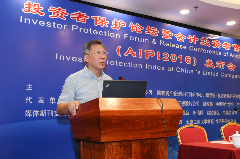 922日,我校召開中國上市公司投資者保護論壇暨投資者保護指數發布會,連續第七次發布該指數,同時首次發布新三板投資者保護指數。我校副校長謝志華、財政部會計司、企業司原司長劉玉廷,中國投資協會副會長、中國創投委常務副會長沈志群出席發布會。中國社會科學院財經戰略研究院院長高培勇出席發布會并作主題演講。《中國經營報》、《會計研究》等在京媒體及專業期刊,上市公司、新三板掛牌公司及投資機構代表,在京高校和科研機構代表以及商學院部分教師和學生研究生共計100余人參加了發布會。發布會由商學院楊有紅教授主持,商學院黨委書記歐陽愛平教授為發布會致辭。