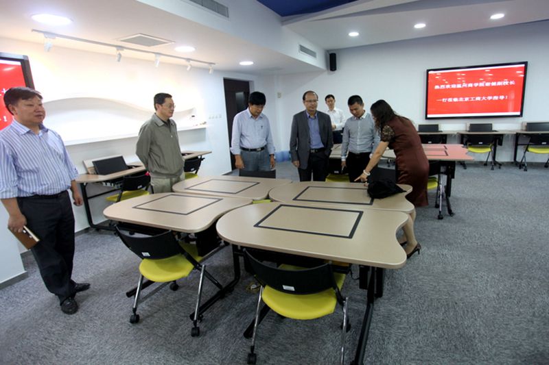 座談會上,與會人員共同觀看了我校宣傳片。會后,考察團一行還參觀了我校阜成路校區文科實踐中心的ERP實驗室。