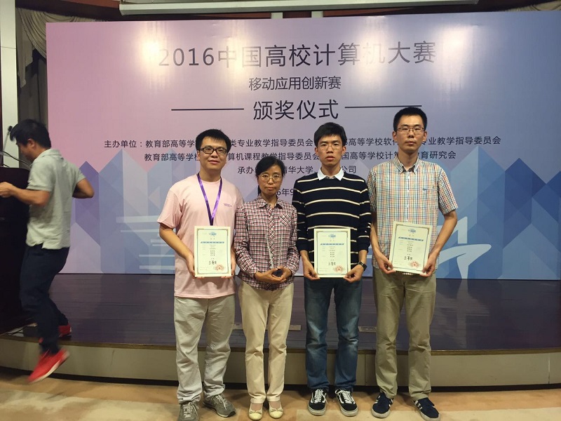 9月22日至24日,在清華大學舉行的“中國高校計算機大賽-移動應用創新賽”全國決賽中,由廉小親老師指導,趙宏林、郝寶智、吳文博三名研究生組成的@world團隊榮獲三等獎。