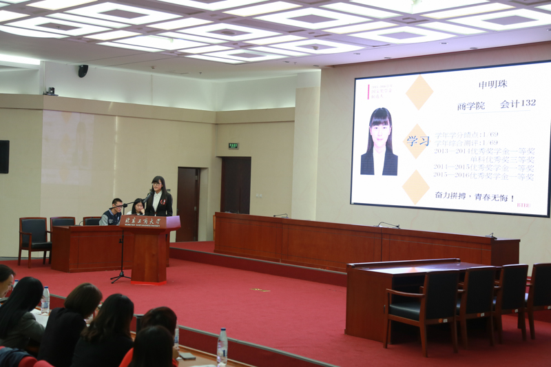 在陳述環(huán)節(jié),每人3分鐘介紹和展示了其思想表現(xiàn)、學業(yè)成績、社會服務(wù)、競賽獲獎等方面的情況和取得的成績,31名申請人落落大方,充滿自信,盡顯工商學子風采。他們中有在各類國際競賽中斬獲大獎的“競賽達人”,也有學分績點達到4以上、多門數(shù)學課程100分的“超級學霸”,還有在志愿服務(wù)、學生工作中成績斐然的優(yōu)秀學生干部,更有屢屢在學術(shù)期刊發(fā)布論文的“科研新星”。不少申請人已經(jīng)獲得進入北京大學、中科院研究生院、中央財經(jīng)大學、北京交通大學等國內(nèi)外優(yōu)秀院校進一步深造的機會,攻讀碩士甚至直讀博士學位。可謂群星璀璨,耀眼奪目。