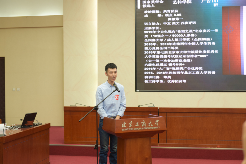 本次國家獎學金評審由教師評委18人、學生評委180人共計198人組成龐大的評審團,通過“北京工商大學智慧校園”手機客戶端現(xiàn)場投票決定推薦獲獎名單。其中學生評委來自9個學院,每個學院20人,半數(shù)以上為16級新生。