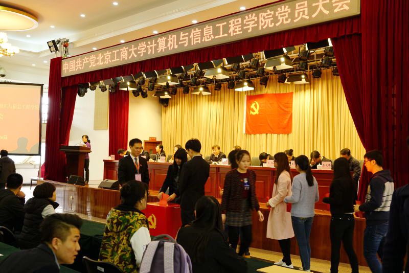 大會在莊嚴的國歌聲中拉開帷幕,學校黨委組織部武晶晶同志宣讀了《關于同意中共北京工商大學計算機與信息工程學院委員會召開黨員大會的批復》。