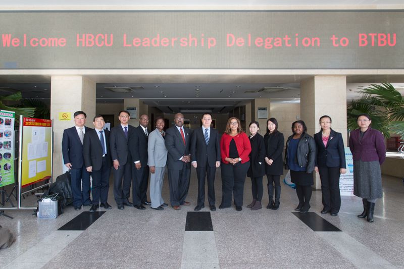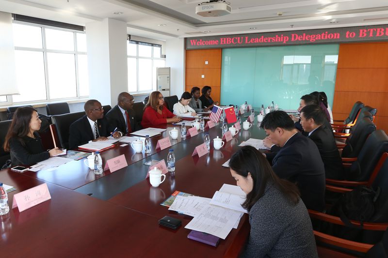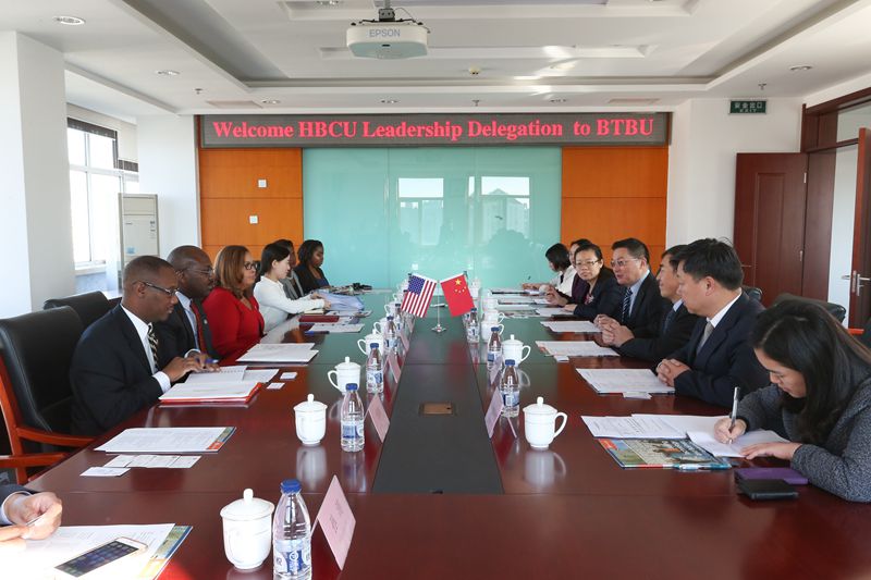 10月31日,根據教育部國際司的安排,美國傳統非洲裔大學校長團一行8人訪問我校。李朝鮮副校長在阜成路校區親切會見了代表團一行。