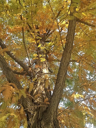 水杉,裸子杉科植物,落葉喬木,是中國特產的珍稀古老孑遺植物,被譽為“植物屆大熊貓”。水杉是我校良鄉校區的特色樹木,主要種植于良鄉校區文二樓到求知廣場水池邊,共計47棵。凡見過水杉的人,大抵沒有不喜愛它的。它的姿態極美,形若寶塔,亭亭秀麗,樹葉宛如羽毛,夏季碧綠蔥蘢,每逢秋季,樹葉先變黃,后變棕紅,隨之落葉。學校的水杉大多臨湖而生,秋色漸染的水杉倒影在波光粼粼的湖水中,仿佛一幅希施金的油畫。