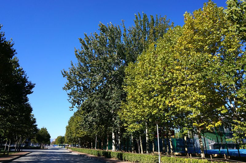毛白楊:胡桃科楓楊屬植物,樹干通直挺拔,枝葉茂密,是常用的造林綠化樹,落葉前樹葉會變黃。我校種植的毛白楊主要位于阜成路校區圖書館北側,共計5棵,良鄉校區工一樓、文一樓、文二樓后道路,共計234棵。白楊樹是很普通的樹,并不是傳統意義上的秋季觀賞樹,但那一排排整齊挺拔的白楊樹并不只是樹而已,更多的象征著一種值得禮贊的精神:質樸、堅強,力求上進,正如默默耕耘的北工商人。
