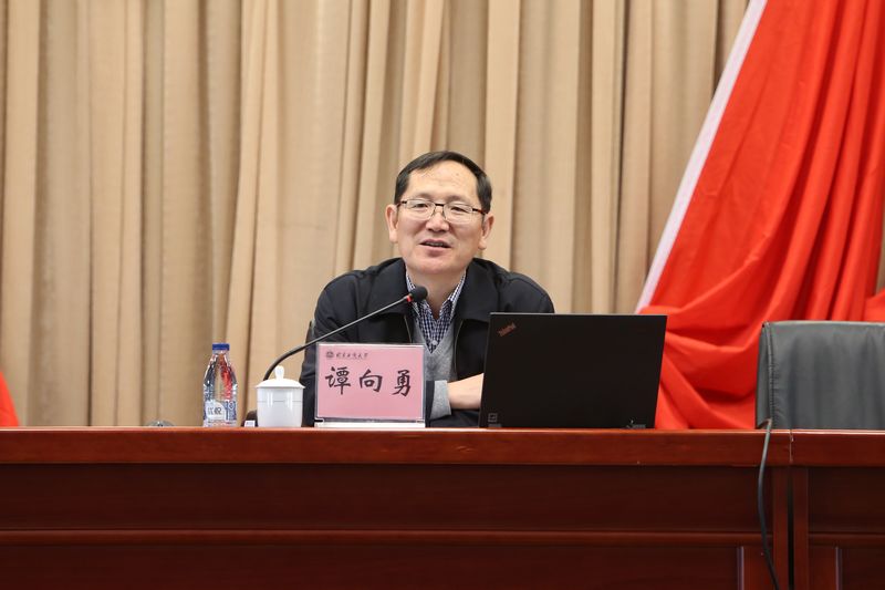 黨委書記譚向勇代表學校黨委對機關黨員大會的隆重召開表示祝賀,并以學習貫徹十八屆六中全會精神為主題,為機關黨員上了一堂黨課。他回顧了十八大以來歷次中央全會的主要內容,分析了十八屆三中、四中、五中、六中全會主題與構建“四個全面”戰略布局的關系,并對十八屆六中全會精神進行了重點解讀,對推進全面從嚴治黨特別是學習貫徹《新形勢下黨內政治生活若干準則》和《中國共產黨黨內監督條例》提出明確要求。