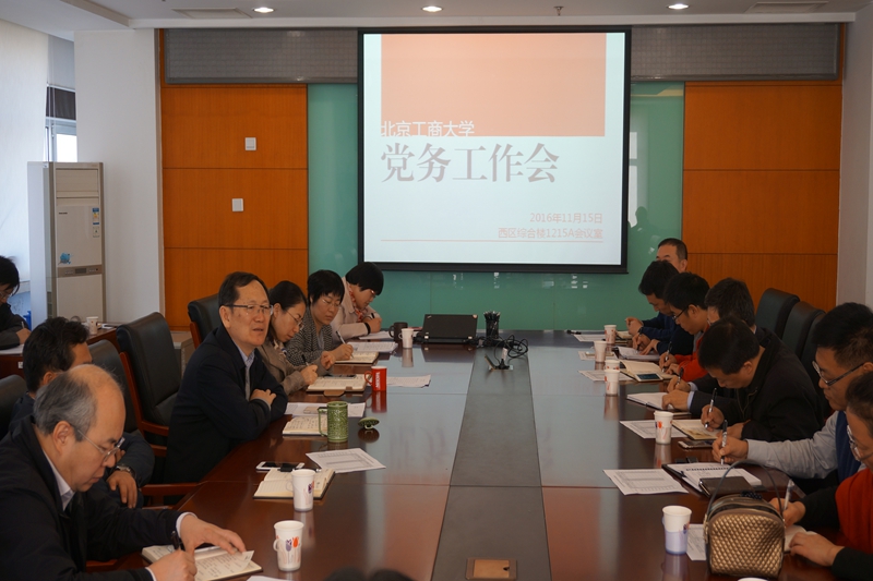 11月15日,學(xué)校在阜成路校區(qū)召開黨務(wù)工作會。學(xué)校黨委書記譚向勇、黨委副書記張德玉、董竹娟出席會議。學(xué)校辦公室、黨委組織部負(fù)責(zé)人和各基層黨委(黨總支、直屬黨支部)書記及黨務(wù)秘書參加會議。