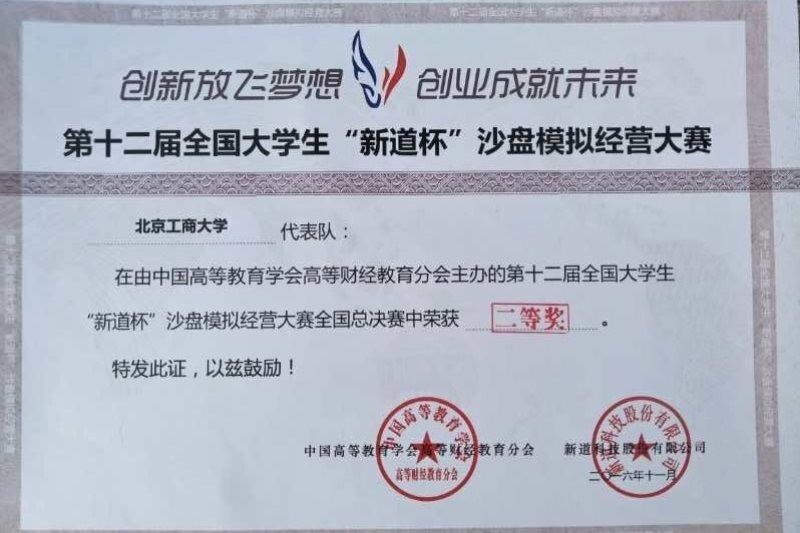經過校賽、省賽等數輪選拔,全國總決賽共有122只本科院校隊伍的600余名學生參加,共分4個區進行。本次比賽為團體賽,每支參賽隊由5名參賽選手組成。5名參賽選手分別擔任總經理、財務總監、生產總監、營銷總監、采購總監。每支代表隊模擬一家生產制造型企業,與其他參賽隊模擬的同質企業在同一市場環境中展開企業經營競賽,最終根據企業盈利情況、發展前景等多個因素決出勝負。我校代表隊所在D賽區強手如林,由于總決賽規則有所修改,競爭十分激烈。隊員們穩扎穩打,沉著應對,最終榮獲二等獎。