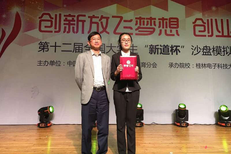 11月26-27日,第十二屆全國大學生“新道杯”沙盤模擬經營大賽全國總決賽系列賽在廣西舉辦,我校學生代表隊榮獲二等獎,會計142班于悅悅同學榮獲“職場明日之星”大賽冠軍,文科實踐中心周付安老師獲優秀指導教師,文科實踐中心黃婉秋老師獲第二屆“新道杯”VBSE本科院校骨干教師說課大賽三等獎。