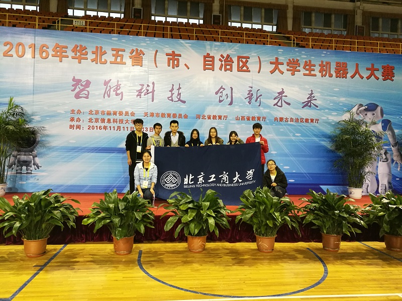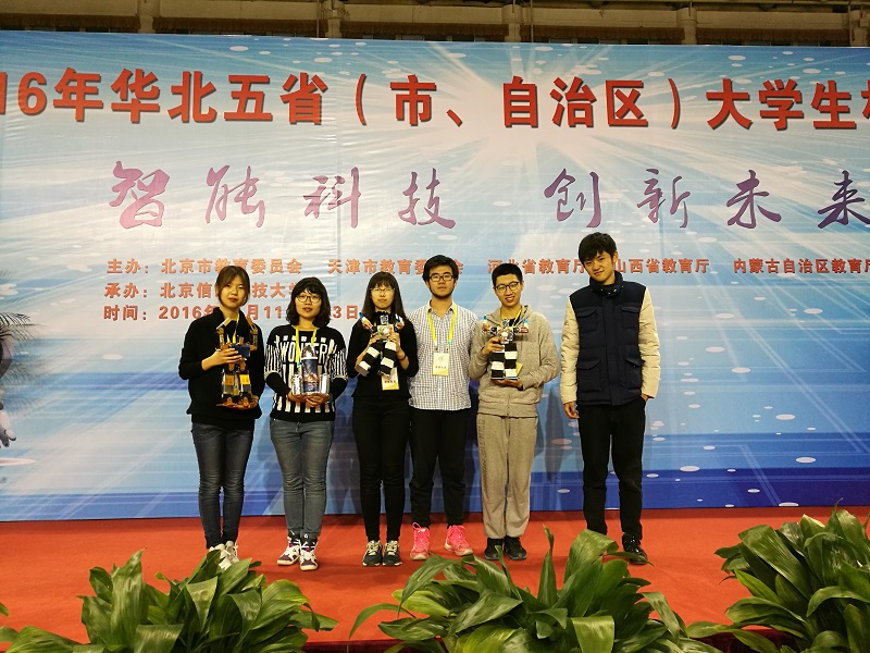 近日,2016年第四屆華北五省(市、自治區)大學生機器人大賽在北京落幕。我校經過培訓選拔共有16支隊伍參加了8個項目的比賽,參賽人數為歷年之最。經過激烈角逐,我校參賽隊伍分別取得空中機器人高級組一等獎,創意設計賽二等獎,武術擂臺機器人、舞蹈機器人等8項三等獎,取得歷年來最好成績。