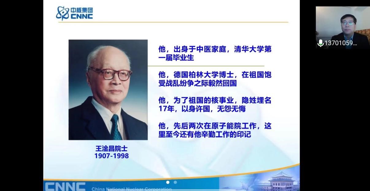 4月15日是第七個全民國家安全教育日,中國原子能科學研究院原院紀委副書記、黨委宣傳部部長、院機關黨委書記侯德義,以“兩彈一星功勛獎章”獲得者王淦昌的事跡及精神為題展開專題講座。侯德義從國家安全的視角切入,從“我愿以身許國”“干驚天動地的事,做隱姓埋名的人”“科學報國投身新中國原子能事業”三個方面簡述了王淦昌的一生,贊揚了王淦昌以身許國的愛國奮斗精神,對他身居高位而心如赤子的高貴品格表達了敬佩之情。